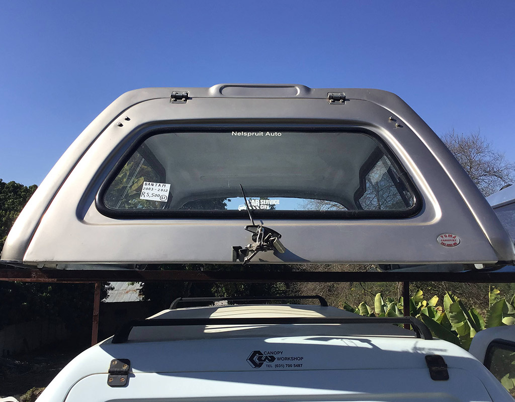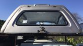 A camper shell (also canopy, and sometimes called truck topper, truck cap, bed cap, box cap, or simply shell) is a small housing or rigid canopy used as a pickup truck or coupe utility accessory. The housing is usually made of fiberglass or aluminum, but sometimes wood or canvas, and is mounted atop the pickup truck’s rear bed. It usually covers the entire bed of the pickup truck, and is large enough to be used for camping purposes, thus making the vehicle an RV. The top of the camper shell is usually even with or above the top of the truck cab.
