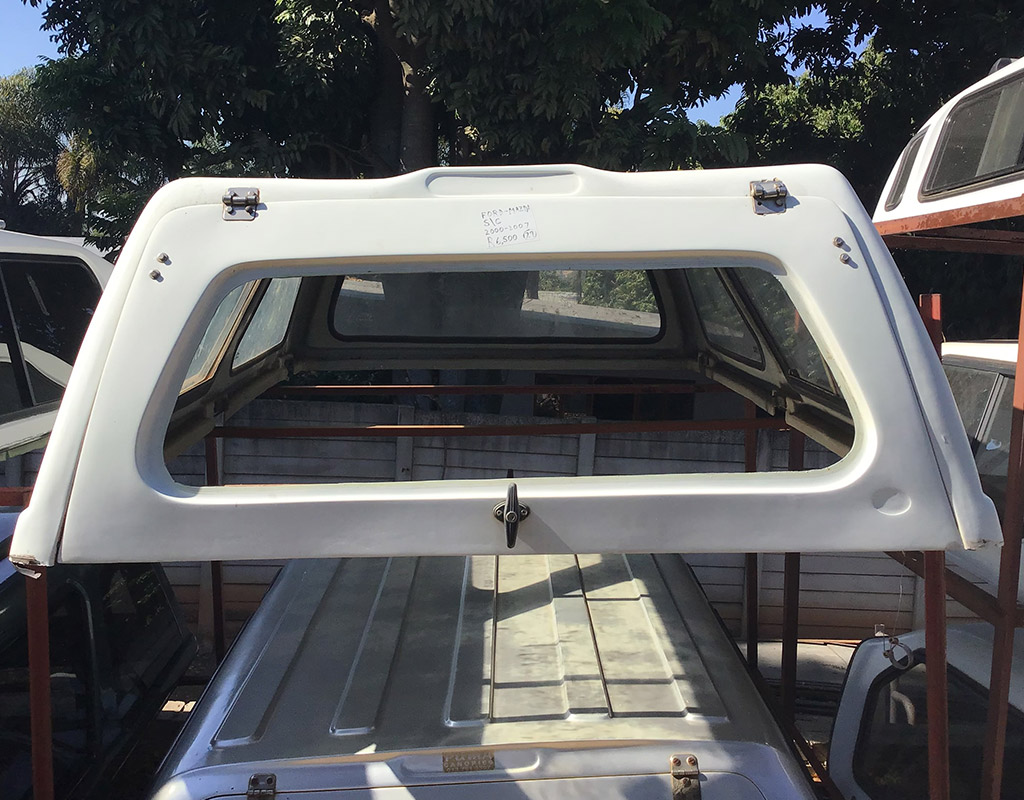 A camper shell (also canopy, and sometimes called truck topper, truck cap, bed cap, box cap, or simply shell) is a small housing or rigid canopy used as a pickup truck or coupe utility accessory. The housing is usually made of fiberglass or aluminum, but sometimes wood or canvas, and is mounted atop the pickup truck’s rear bed. It usually covers the entire bed of the pickup truck, and is large enough to be used for camping purposes, thus making the vehicle an RV. The top of the camper shell is usually even with or above the top of the truck cab.