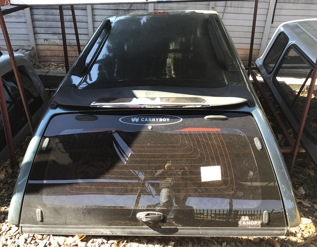 A camper shell (also canopy, and sometimes called truck topper, truck cap, bed cap, box cap, or simply shell) is a small housing or rigid canopy used as a pickup truck or coupe utility accessory. The housing is usually made of fiberglass or aluminum, but sometimes wood or canvas, and is mounted atop the pickup truck’s rear bed. It usually covers the entire bed of the pickup truck, and is large enough to be used for camping purposes, thus making the vehicle an RV. The top of the camper shell is usually even with or above the top of the truck cab.